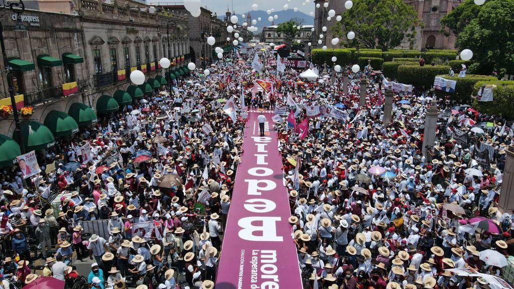 El fundador de Morena calificó a su cierre de campaña como “una cita histórica con la esperanza y la dignidad”, que tiene como propósito el voto masivo por Morena-PT el próximo 06 de junio para iniciar la transformacion de Michoacán.
