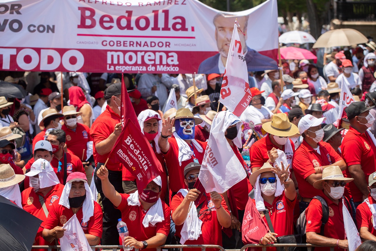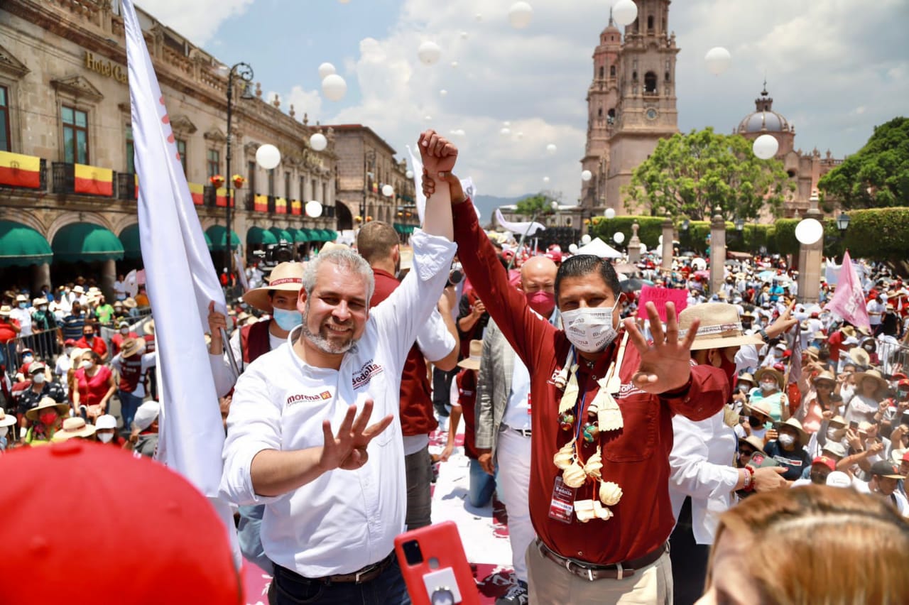 Mario Delgado, dirigente nacional de Morena, llamó a votar por Ramírez Bedolla, “porque Michoacán no merece ser gobernado por una pandilla de ladrones. Merece un gobierno honesto que trabaje por la reconciliación, paz y tranquilidad de todas las familias”.