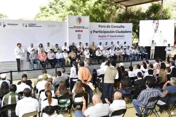 En gira de trabajo por la región Tepalcatepec, el mandatario adelantó que a partir de enero comenzará a tener audiencias públicas desde esta zona del estado, en este marco afirmó que en los Foros es fundamental la participación de la sociedad civil, de ahí la importancia de abrir canales de comunicación para poder recibir las propuestas de la población, “soy un convencido de que hay que escuchar la opinión de los demás para ver como mejoramos la tarea pública”.